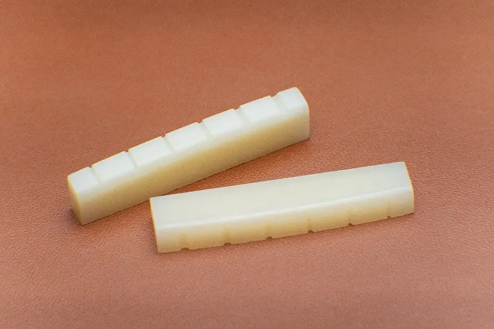 High-quality bone nuts for guitars, ensuring improved tone and tuning stability for musicians and luthiers.